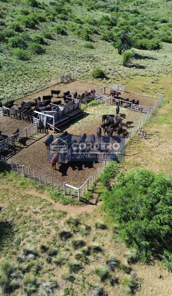 Campo con acceso al río, arroyos, mallines naturales, infraestructura ganadera (corrales y manga), dos puestos y más de 400 ha forestadas con pino de 35 años.