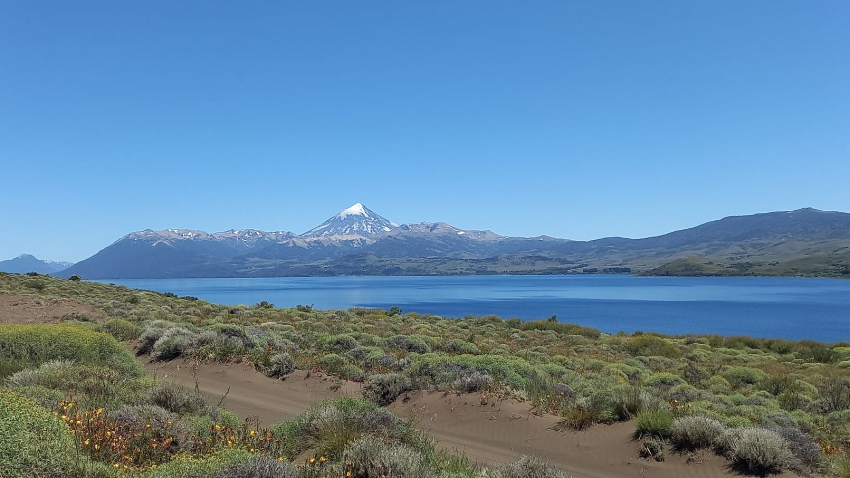 Excelente ubicacion en el lago huechulafquen con vistas al lago y al volcán Lanin.